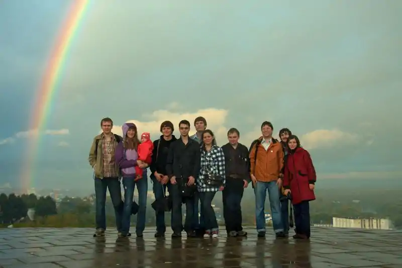 Слева направо: Александр Сигачёв, его жена и дочка, pankdm, Loir, Zverik с женой, Scondo, Zkir, GranD и его плюс один.