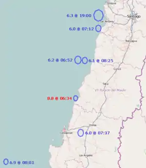 - The preceding is a non-contiguous excerpt from "Wikipedia:2010 Pichilemu earthquake"; references and wikilinks have been stripped from the original and replaced with OSM-related links. For supporting references, see the Wikipedia source.