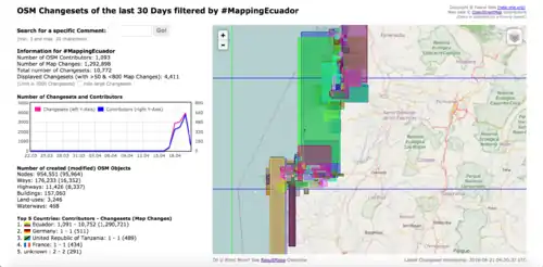 - 24 April - Over two million changes made using #MappingEcuador changeset comment.