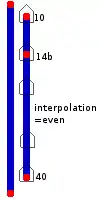 As seen in the example picture above, it's allowed to add nodes that do not have an integer value for their addr:housenumber=* tag somewhere in an odd/even/all interpolation (e.g., 12b). Those will be ignored for the interpolation. However, endpoints of the interpolation way always have to follow the given interpolation rule! i.e. For addr:interpolation=even the addr:housenumber=* tag on the end nodes must be an even number.