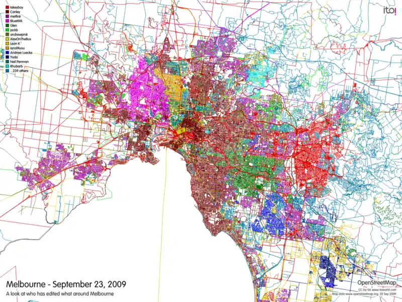 We need your help to map a free map of Melbourne and Victoria. A map which is as error free and up to date as possible. If you have a GPS system, help us with making traces. If you want to fill in information from the aerial imagery, press the 'edit' tab on the main map page. Help make Melbourne the worlds most mappable city! ;)