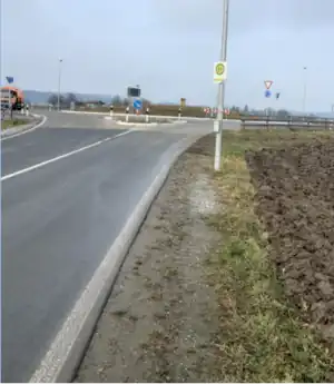 | kerb | lowered/flushed(ebenerdig) | an der Stelle der Plattformabsenkungen für Fußgänger. Diese werden mit einem Fußweg über die Plattform und/oder zur Straße verbunden. | ![]() Plattformabsenkung Bushaltestelle 1814 - Lindau, ZUP-Anheggerstr. |