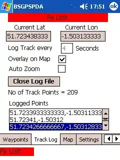 - V1.9.0 02/10/07 BIG changes - back up your old version and expect some bugs. Regional Settings (Dutch (Netherlands)) Bug fixed. Dutch numbers contain commas ie 123.456,00. This resulted in corrupt Tile Addresses. BSGPSettings.txt now obsolete - all settings now held in Registry - The settings tab has been amended for more User friendly selecting Map location and Layer. PDA prevent power off option added. Previously, if the PDA shut down as a result of User selected power saving options the program would crash. On exit the User power saving options are restored. Auto Start receiver option added. If this option is selected then, on program load, the receiver is started automatically and the program goes straight to the Map tab. Simulate lat/lon position option added. Enter a lat/lon of anywhere in the world and the OSM Map will be displayed if the tiles have been downloaded already. If not go to the Tiles tab and download the tiles and then switch to map. This will help when planning mapping trips. Plus minor performance tweeks - I hope!