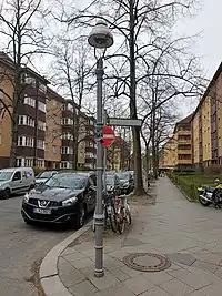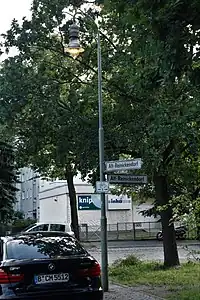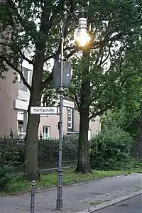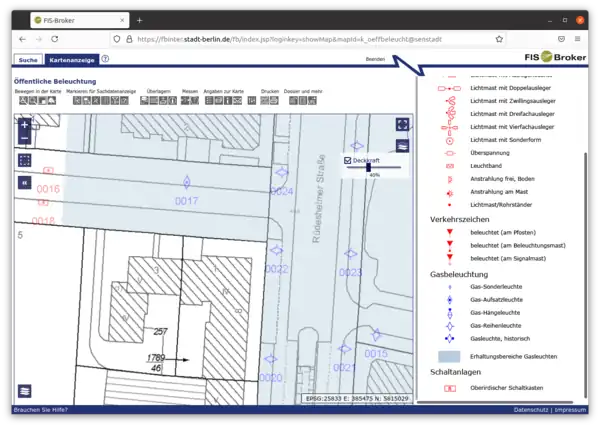 Da die Gaslaternen in Berlin von der Stromnetz Berlin betrieben werden, bekommen sie die folgenden Attribute: highway=street_lamp lamp_type=gaslight lamp_operator=Stromnetz Berlin Auf dem Masten der Gasleuchten sind Kennziffern (Mastnummern) angebracht. Diese Stellen eine Zählung der Gaslaternen pro Straße dar. Diese werden in den Daten eingetragen mit: lamp_ref=Mastnummer Ort und Mastnummer der Gasleuchte kann man aus dem Geodatenportal der Berliner Senatsverwaltung für übernehmen. Wie das geht ist im Abschnitt "Gasleuchten im Geoportal Berlin" beschrieben. Da sich die Mastnummern der Gasleuchten auf die Straßen beziehen, ist es sinnvoll, weitere Adressinformationen zu erfassen. Dies geschieht am besten mit dem object:-Präfix: object:country=DE object:city=Berlin object:postcode=Postleitzahl object:street=Strassenname Die Leuchten unterscheiden sich durch die Anzahl der Glühkörper oder Glühstrümpfe die das Licht abgeben. Aufsatz- und Modelleuchten haben vier Glühkörper, Reihenleuchten haben meist sechs Glühkörper, Hängeleuchten haben entweder vier oder neun Glühkörper. Erfasst werden diese Daten mit: lamp_flames=Anzahl Zu jedem Leuchtentyp gehören bestimmte Mastformen. Wenn möglich können diese mit: lamp_mount=Mast (straight_mast, bent_mast, cantilever_mast, wall) lamp_mount_type:de=Mastform erfasst werden. Die folgenden Abschnitte geben eine Übersicht über die Berliner Gasleuchtentypen mit zugehörigen Mastformen und den Mastformen nach Gasleuchtentyp. Gasleuchten unter DenkmalschutzBerlin plant die Umrüstung der vorhandenen gasbetriebenen Straßenbeleuchtung auf elektrischen Betrieb. In enger Zusammenarbeit zwischen der Senatsverwaltung und dem Landesdenkmalamt wurden 29 Bereiche mit insgesamt 3300 Gasleuchten ausgewählt, die von der Umrüstung auf elektrischen Betrieb ausgenommen sind. Zu diesen Bereichen, in denen die Gasleuchten erhalten bleiben, gehören neben den Welterbesiedlungen der Moderne auch Altstadtlagen in Spandau, Promenadenabschnitte in Alt-Tegel, die Bereiche um den Lietzensee in Charlottenburg, aber auch Straßen in Gatow.[4] Karte der Erhaltungsbereiche der Gasbeleuchtung in Berlin Gasleuchten in solchen Erhaltungsbereichen stehen unter Denkmalschutz (Landesdenkmalamt Berlin) und es können folgende Tags hinzugefügt werden:[5] heritage=4 heritage:operator=Landesdenkmalamt Berlin heritage:operator:wikidata=Q1802160 (Hinweis: "Q1802160" referenziert auf den Wikidata-Eintrag für das Landesdenkmalamt Berlin.) Die Gasleuchten-Erhaltungsbereiche selbst werden als Flächendenkmale in die Denkmalliste des Landesdenkmalamts Berlin eingetragen. Dies ist derzeit (Stand April 2021) noch nicht geschehen. Sobald die Erhaltungsbereiche als Flächendenkmale eingetragen sind kann die 8-stellige Denkmalnummer des Bereichs, in dem sich die Gasleuchte befindet, mitgetaggt werden: heritage:ref=XXXXXXXX Gasleuchten im Geoportal BerlinDas Geoportal Berlin der Senatsverwaltung für Stadtentwicklung bietet Daten zur öffentlichen Straßenbeleuchtung. Eine Kartendarstellung dieser Daten kann im FIS-Broker aufgerufen werden: https://fbinter.stadt-berlin.de/fb/index.jsp?loginkey=showMap&mapId=k_oeffbeleucht@senstadt Hier ist ein Screenshot dieser Karte: ![]() Der Kartenausschnitt zeigt einen Bereich südwestlich des Rüdesheimer Platzes in Berlin-Wilmersdorf. Die Gasleuchten sind als blaue Symbole eingezeichnet, darunter stehen, ebenfalls in blau, die Mastnummern. Der Gaslichterhaltungsbereich ist hellblau unterlegt. Für Gasleuchten innerhalb eines solchen Bereichs besteht Denkmalschutz. Diese Karte aus dem Geoportal Berlin wird als WMS (Web Map Service) bereitgestellt. Sie kann mit dem folgendem Link als Hintergund in JOSM eingebunden werden: Dazu in JOSM in der oberen Menüleiste auf "Hintergrund" -> "Hintergrund-Einstellungen" klicken. In dem sich dann öffnenden Menü klickt man auf den Button "+ WMS" (im Menü ganz rechts) und kopiert obigen Link in die Zeile "2. GetCapabilities-URL eingeben". Bei Übernahme von Daten dieses Kartendienstes bitte unbedingt "Geoportal Berlin / Öffentliche Beleuchtung" als Quelle angeben. Anzeige der Gasbeleuchtung auf Karten