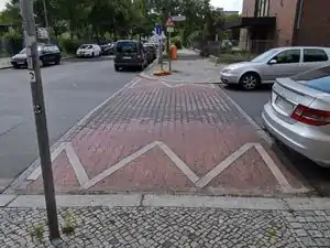 Transport- und Übergangsrampen, um Querungen für die Müllentsorgung, Eltern mit Kinderwagen oder Rollstuhlfahrer frei zu halten. Werden in Berlin durch die Berliner Stadtreinigung (BSR) aufgestellt.