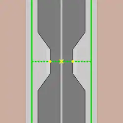 T-Kreuzung mit nur teilweise separat gemappten Gehwegen![]() Haben nicht alle Straßen separat gemappte Gehwege, ist eine |