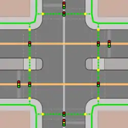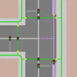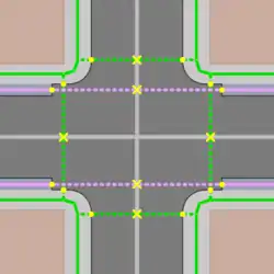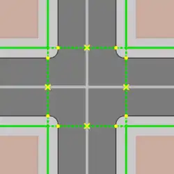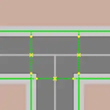 T-Kreuzung mit separat gemappten Gehwegen![]() Die |