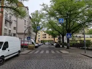 Kreuzung ohne markierte Querungen, aber mit gekennzeichnetem Radwegübergang