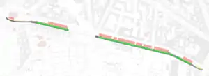 Die nach Norden führenden Radstreifen sind als separate Linien gemappt, da es sich dabei um geschütze Radstreifen handelt, die mit Leitschwellen und im späteren Verlauf einem Parkstreifen physisch vom fließenden Verkehr separiert sind (vgl. cycleway:separation). |