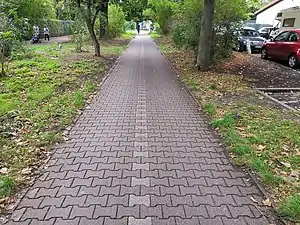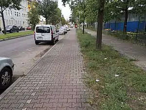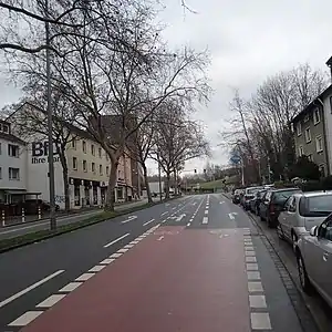 - Hochbordradweg (Radwege, die von der Fahrbahn durch einen Bordstein getrennt und häufig im Bereich des Gehwegs verlaufen):