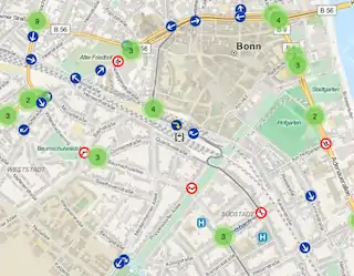 HinweisDiese Seite soll eine Möglichkeit geben die Ansicht von Bonn in den verschiedenen (Themen-)Karte auf schnelle Art und Weise zu genießen. Der Aufbau und die Sortierung kann sich in der Startphase noch stark ändern, Ideen zur Struktur wird gerne entgegen genommen (siehe Reiter Kontakt) Allgemeine KartenDies sind allgemeine Karten ohne einen besonderen Themenschwerpunkt. Sie unterscheiden sich im Kartenbild und in den Dingen, die als Overlay dazugeschaltet werden können.