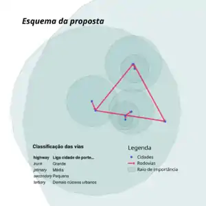 A rota ideal entre duas cidades será traçada em conversa nos grupos nacionais e com as comunidades locais. Para evitar o trabalho de avaliar todas as rotas possíveis entre todas as cidades do Brasil, considera-se que uma cidade deveria estar conectada às cidades maiores que ela, num raio (em km) igual ou menor que a raiz quadrada de sua população. Sendo que deverá haver uma rota ideal entre essas duas cidades se pelo menos uma delas estiver no raio de importância da outra.