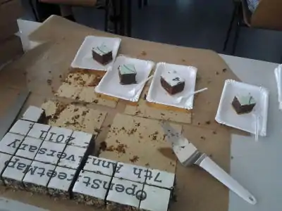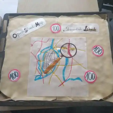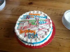 The term "Cake" became associated with OSM as a result of the early mapping parties, specifically Mapchester, the first mapping party in Manchester in May 2006. A "Cake diagram" was produced to help with the mapping effort (top image)