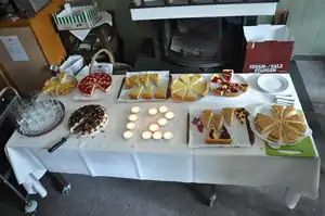 See shop=pastry for places where pastisserie (cakes, biscuits, strudel and pies) is sold, or shop=bakery for a place where fresh bread and other types of cakes are made and sold.