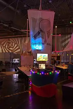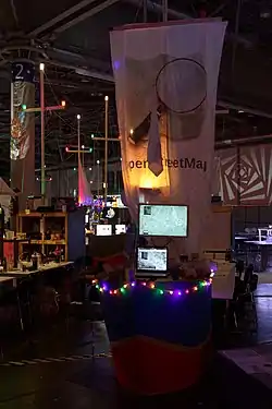 - I agree. Our eyecatcher was tooooo small. More people like the year before visited our assembly. But this was still far away from the success two years ago. A large rectangular sail (instead of triangular one on the photo) attached between the two big masts of the ship could be a projection surface for the beamer that perfectly catches the angle of passing people's eyes. Watching the passing people nobody payed attention to thinks like "FOSSGIS" or "SOTM" on the screen. Of course we as insiders know what it is. But other people ...? The only real eyecatcher was "Show me the way", which was hacked and optimized by Mstock and thus ran smoothly for 24 hours ... until a person called "Simon Poole" was catched editing OSM. :-) -- Tirkon (talk) 07:46, 10 January 2020 (UTC)