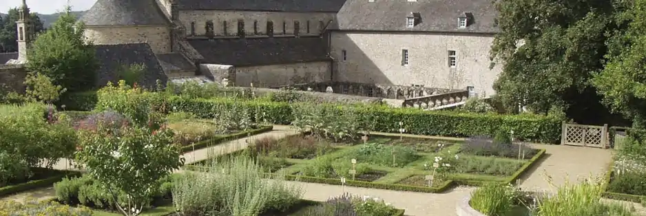 Aux plantes habituelles, médicinales, condimentaires et aromatiques s'ajoutent, dans un espace spécifique, des plantes exotiques, magiques, en voie de disparition. l'extension du jardin se prolonge dans le cloître qui reçoit une ornementation de buis et fougères. Les ruines des communs mises au jour lors des fouilles archéologiques sont animées par des espèces végétales.