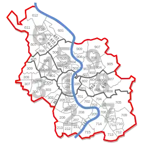 Nummern der Stadtbezirke und Stadtteile