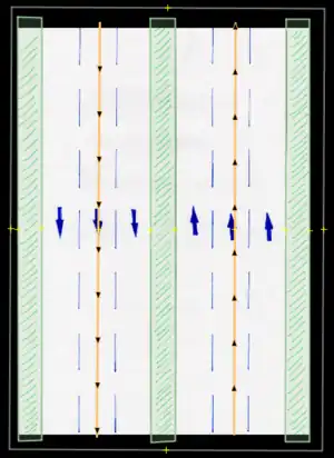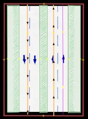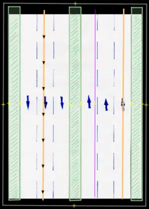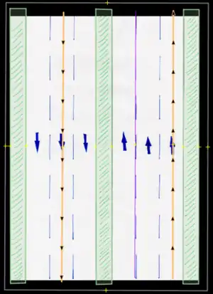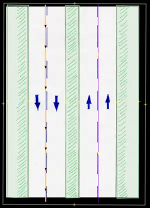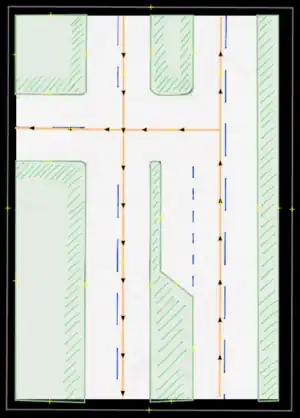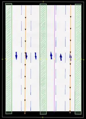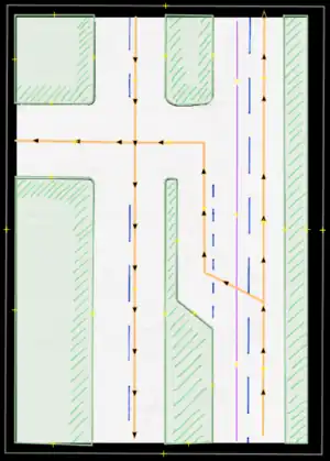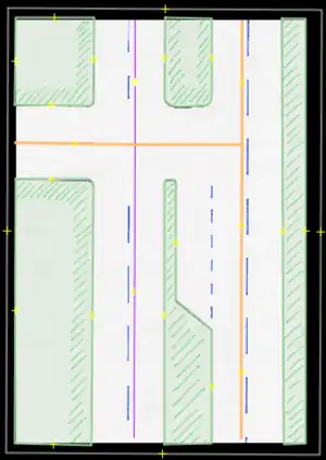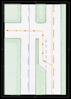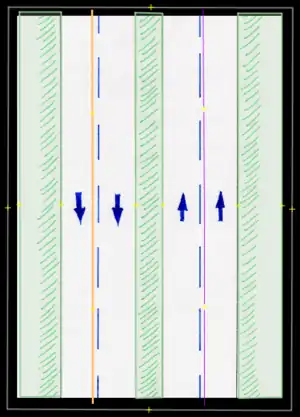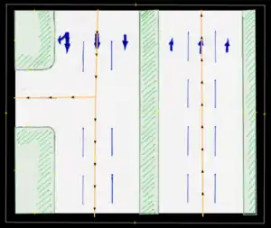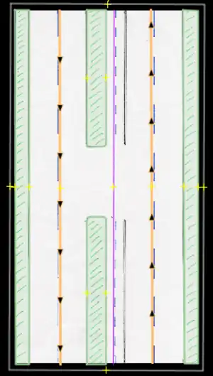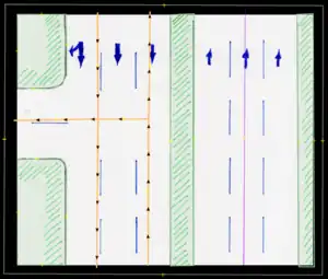 - Bicycle lane/bicicarril: Permanent bicycle lane or similar, where a previous "car lane" has been designated for this use, usually only defined by painted signs. These are to be entered by the proper use of tags (restriction:conditional) only (not to be drawn in separately).