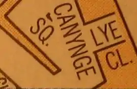 To the right is a tiny scan from an A–Z map of central Bristol. Only if you go and wander around Canynge Square in Bristol you see some nice houses (in the photo below the map) where that Close should be.