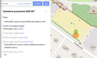 | Umístění vyřešené poznámky (podobné starší poznámky se již neukazují) |