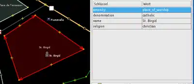Polygon) automatisch ausgewählt, ist also in der Standardeinstellung von JOSM rot markiert.