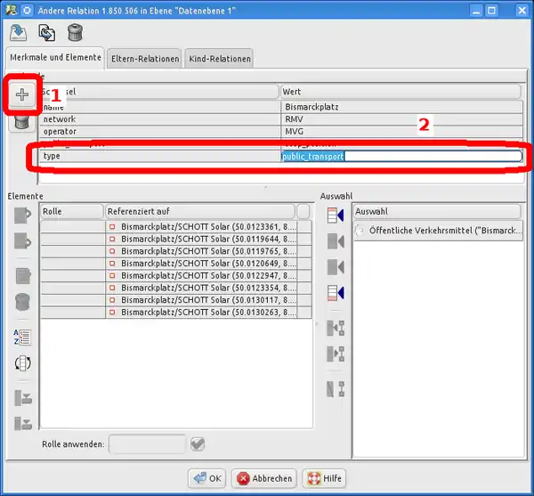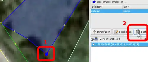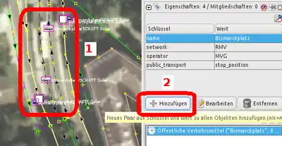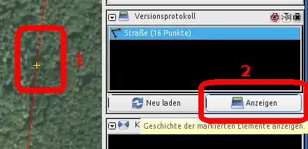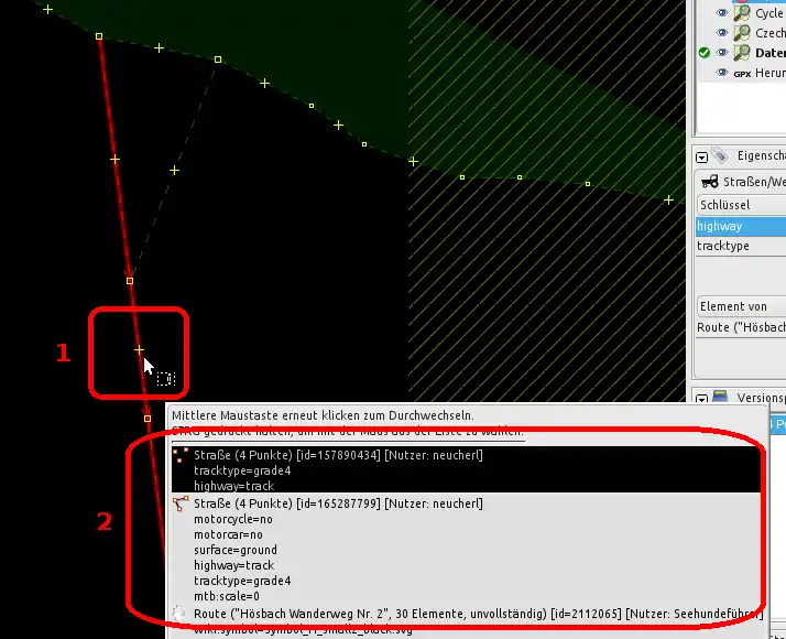 Nodes (Knotens) angezeigt, wie sie in der OSM-Datenbank eingetragen ist. Ein Klick auf die Nummer zeigt den