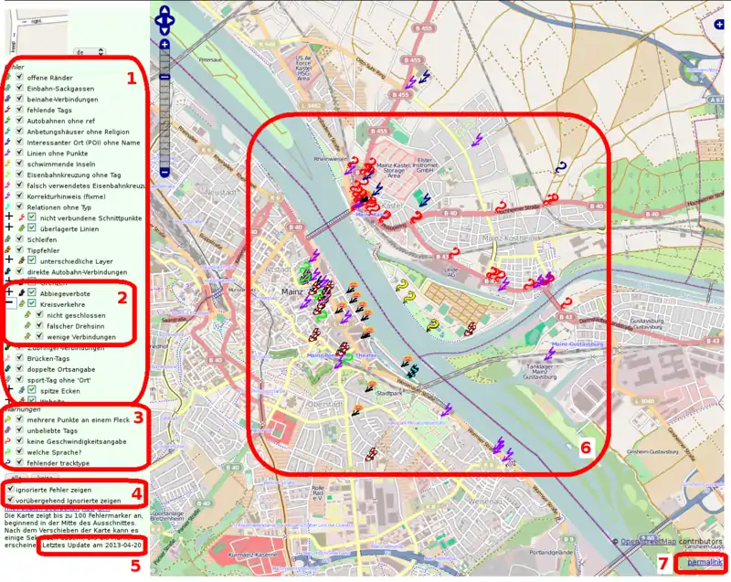 - (5) keepright überprüft die OSM-Datenbank in regelmäßigen Abständen. Wann der letzte Durchlauf war, seht ihr hier.