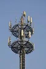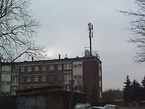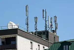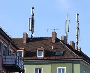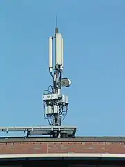 Eine Station (BTS=BaseTransceiverStation) für den Betrieb des Mobilfunks. Diese sind im heutigen Funkzellenbetrieb meist auf hochgelegenen Flachdächern installiert, als Mastaufbau oder als Aufbauten auf Türmen realisiert. Die Antennen auf Flachdächern sind entweder auch auf einem kleinen Mast (>5m mit Steigeinrichtung) montiert oder am Rande des Hochhausdaches mittels kleineren Antennenträgern (Befestigungsrohre). Es gibt auch Mobilfunkstandorte, deren Antennen z.B. an Hochspannungsmasten, Windrädern oder Schornsteinen montiert sind.