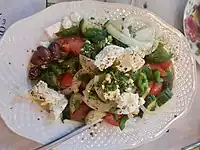 | cuisine | salad | A dish of mixed chopped ingredients, usually vegetables | |||