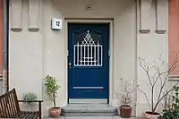 | entrance | staircase[1][2] | Außentür zu einem Treppenhaus oder Treppenaufgang. Oft der Hauseingang eines Mehrfamilienhauses – keine Wohnungstür (auf einer der Etagen). | ![]() |