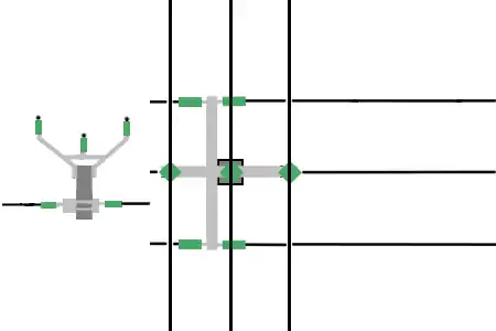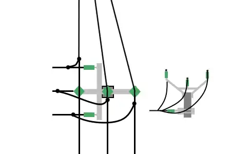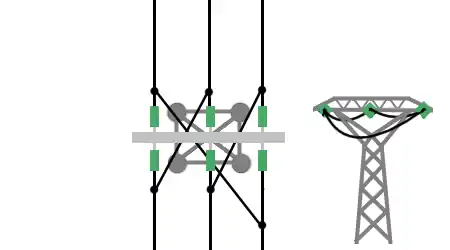 Jede Zeile bezieht sich auf ein unabhängiges Leitungssystem (ein Stromkreis, für Stromleitungen, 3 Kabel in einem alternativen 3-Phasen-System). Schwarze Linien sind obligatorisch und graue Linien sind optionale Elemente, die die Auswahl der Werte nicht verändern, wenn sie vorhanden sind.