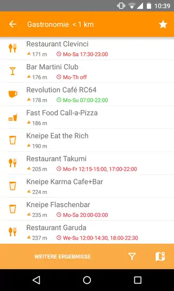 Die Android-App OsmAnd ist in der Lage, anhand der aktuellen Zeit den Status von POIs in der Umgebung anhand des Schlüssels opening_hours anzuzeigen.