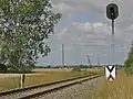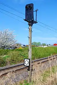 s.o. | Hl-Vorsignalwiederholer werden mit einer weißen Tafel mit einem schwarzen Kreis darauf gekennzeichnet. | |