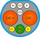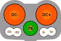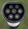 IEC 62196-2 Type 2, or VDE-AR-E 2623-2-2, combined charging system (CCS) plugs, with 2, larger, extra pins for DC charging. | |