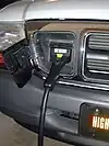 NEMA 5 3-polig NEMA 5-15R receptacle, and NEMA 5-20R receptacle, accepting NEMA 5-15P plugs, 110–127 V AC, 15 A. Commonly used in the Americas and Asia. The user must generally provide a portable "Level 1" trickle charger and connect it between the socket and the vehicle. | |||