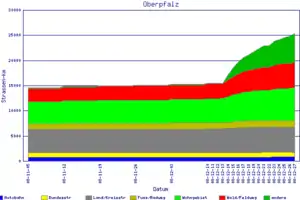 Bezeichnung Regierungsbezirk Oberpfalz, Bayern Fläche 9691 km² (lt. Wikipedia) Grenzlänge 760,65 km (lt. OSM-Relation) OSM-Relation Relation 17596, admin_level=5, GPX Bounding-Box bottom=48.745 left=11.2 top=49.994 (lt. Gary) fiktive Kosten 15'000 € für Luftbilder in 2m-Auflösung