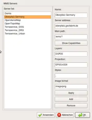 - Adresse des WMS-Servers in den Einstellungen eintragen: