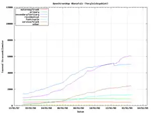 Kategorie % Vollständig vorhanden 08.03.2009 24.03.2009 Hauptstraßen 98,6% 100% Sonstige Wege 44.5% 53.1% Wälder und Lichtungen 62,3% 67.3% Seen 87.8% 90,8% Flüsse 93.7% 94,9% Stromleitungen 97.8% 98,7%