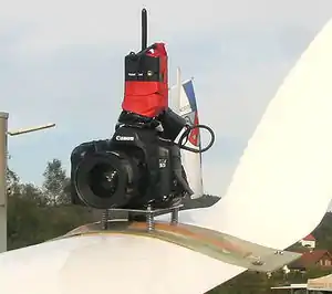 Die Kamera ist so zu befestigen, dass sie bei Horizontalflug genau senkrecht nach unten fotografiert. Sie wird mit einer selbst gebauten mechanischen Konstruktion am Rumpf, am Flügel oder an einer Strebe befestigt. An Streben können Schellen eingesetzt werden, an Flächen wird man um Bohrlöcher nicht herumkommen. Kompaktkameras können auch mit Tape festgeklebt werden. Auch für grössere Kameras ist denkbar, eine "aerodynamische Lagerschale" zu bauen und diese mit Tape festzukleben. Geeignet sind auch strömungsarme Befestigungsorte, beispielsweise die Hinterkante der Tragfläche.
