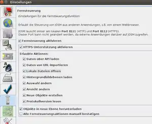 Der Aufruf von JOSM (als einzigem unterstützem Editor) erfolgt über das https-Protokoll. Dazu muß die Fernsteuerung in JOSM eingeschaltet sein. Wenn der Aufruf fehlschlägt ("Wurde JOSM gestartet?"), bitte prüfen, ob der Aufruf von JOSM auf Openstreetmap funktioniert. Wenn nicht, den Anweisungen auf JOSM/Plugins/RemoteControl folgen.
