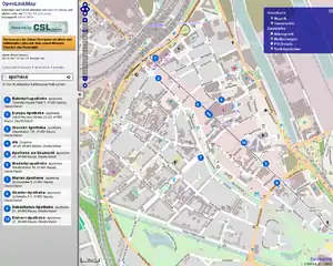 Die OpenLinkMap ist eine Webanwendung, die auf einer OpenStreetMap-Karte viele verschiedene Zusatzinformationen anzeigt.