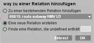 Um einen Wegabschnitt in die ausfindig gemachte Routenrelation einzubinden: