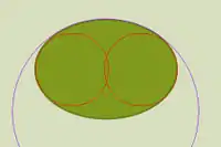Die Punkte P1 und P2 sind Mittelpunkte der Kreise, die Konstruktion wird gespiegelt verwendet um beide weiteren Kreise zu zeichnen...
