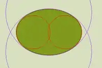 Zur genaueren Bestimmung beider Kreise wird eine traditionelle Ellipsenkonstruktion aus der darstellenden Geometrie verwendet. Bevor die CAD Technik kam, wurde sie zur Ellipsenkostruktion verwendet, da sie gute Ergebnisse liefert: