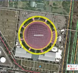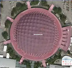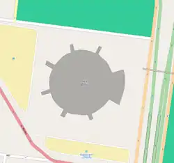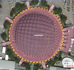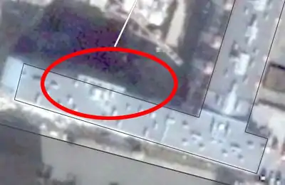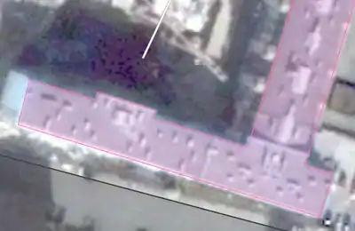 auf der Außenkante Gebäude auf dem Luftbild platziert: