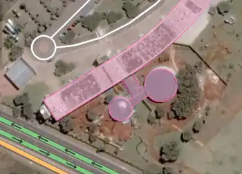 - Eine Umrißecke (auf diesem Bild die linke untere Ecke des gezeichneten Polygons) wir richtig über dem Luftbild platziert.