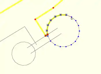 Wir bekommen eine zweite Polylinie die "parallel" zu der ersten ist. Vor allem aber stehen entsprechende Endpunkte beider Polylinien im rechten Winkel zueinander. Wir verlängern die Polylinien so, dass sie sich berühren. Mit gedrückter Strg Taste aktivieren wir beide Polylinien.