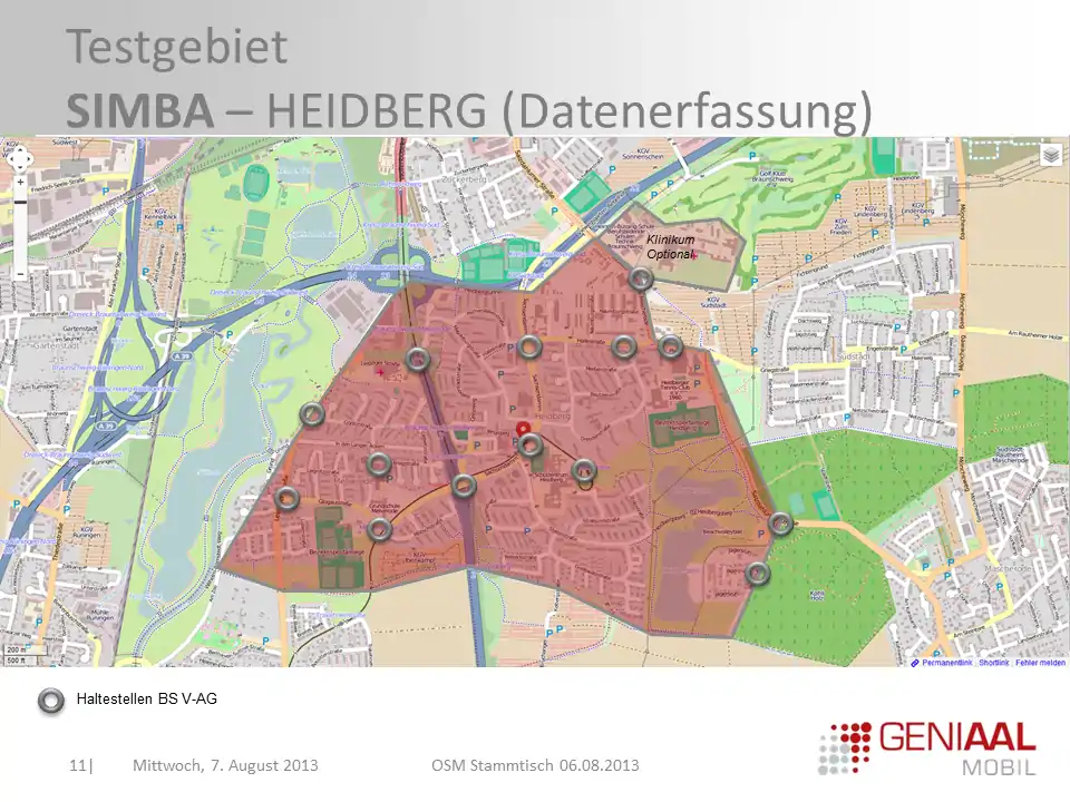 Das Projekt „SIMBA - Sicher und mobil durch begleitende Assistenzsysteme“ führt Datenerfassung am Heidberg (Braunschweig) in OSM durch mit dem Ziel, zukünftig eine Verbesserung des Fußwegeroutings bei der Braunschweiger Verkehrs-GmbH umsetzen zu können. (Stand: Mai 2013). Die OECON Products& Services GmbH möchte der Braunschweiger Community gerne Mal das Vorhaben näher vorstellen.