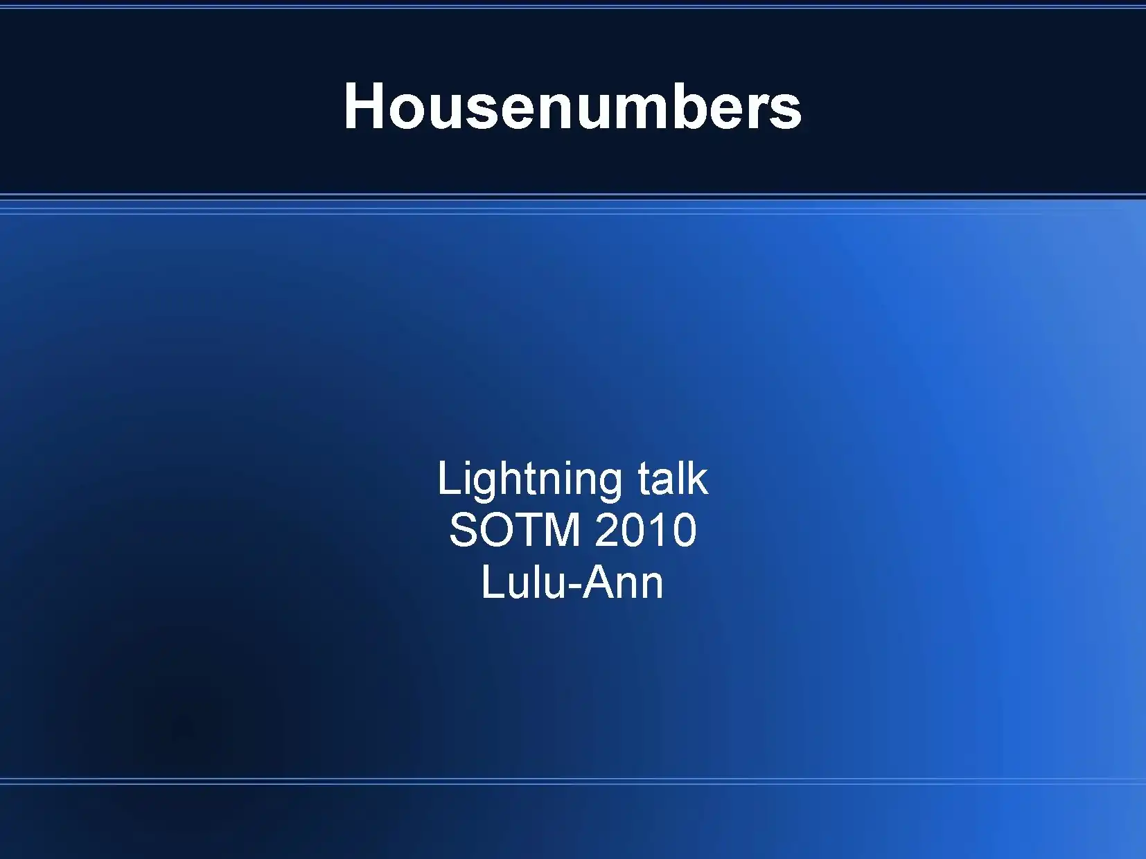 - Wo jeder Eingang eine Gebäudes eine eigene Hausnummer besitzt, setze das addr:housenumber=* Tag auf dem Knoten entsprechend; für Gründe, siehe die SotM Präsentation: