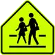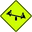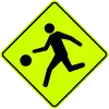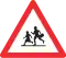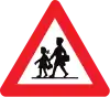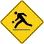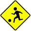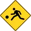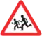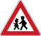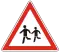 | Ein Wegabschnitt, auf dem mit spielenden Kindern gerechnet werden muss. |